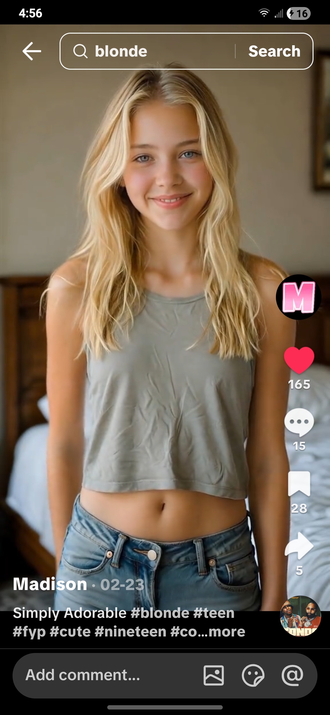 Jenn is a shy, quiet young lady. She has blond hair, green eyes, and small, firm breasts.